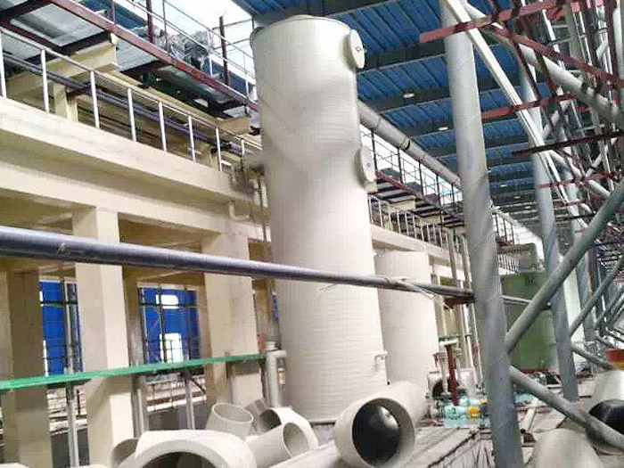 酸雾废气由风管引入净化塔,经过填料层,废气与氢氧化钠吸收液进行气液两相充分接触吸收中和反应,酸雾废气经过净化后,再经除雾板脱水除雾后由风机排入大气。吸收液在塔底经水泵增压后在塔顶喷淋而下,回流至塔底循环使用。净化后的酸雾废气达到排放标准。PPH洗涤塔配件包括:pp和pps阻燃材质透明视窗(Φ400/500mm)、pp和阻燃格栅板(500*500/600*600mm)、pp多面空心球、拉西环、多孔板、喷嘴(3分/4分/6分)等,公司采用多种类,多规格模块化、大批量生产,厂家直销模式生产经营,质优价廉。