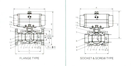 Q611F-10S/F2/V/U型气动球阀主要连接尺寸