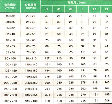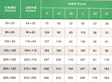 大小头主要连接尺寸(连接方式、承插粘接)
