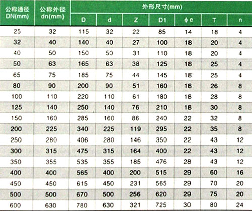 RPP活套法兰活套法兰主要连接尺寸(连接方式,热熔对焊)