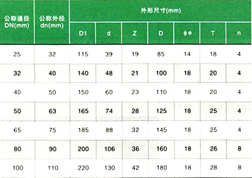 活套法兰主要连接尺寸(连接方式,热熔承插)