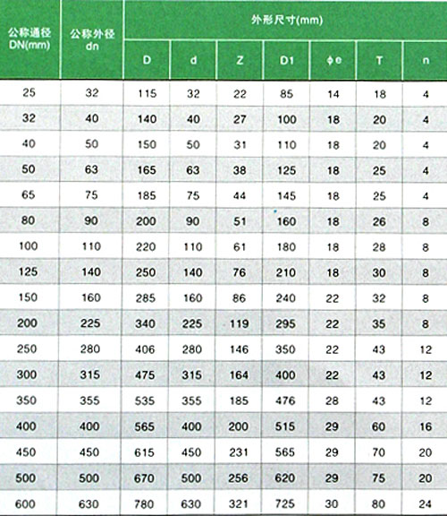 活套法兰主要连接尺寸(连接方式,承插粘接)