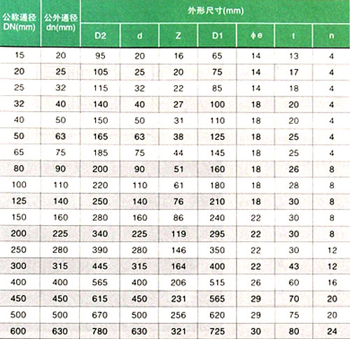 法兰主要连接尺寸(连接方式,承插粘接)