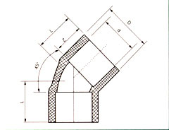 45°弯头主要连接尺寸(连接方式、热熔承插)