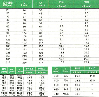 90°弯头主要连接尺寸(连接方式、热熔对焊)